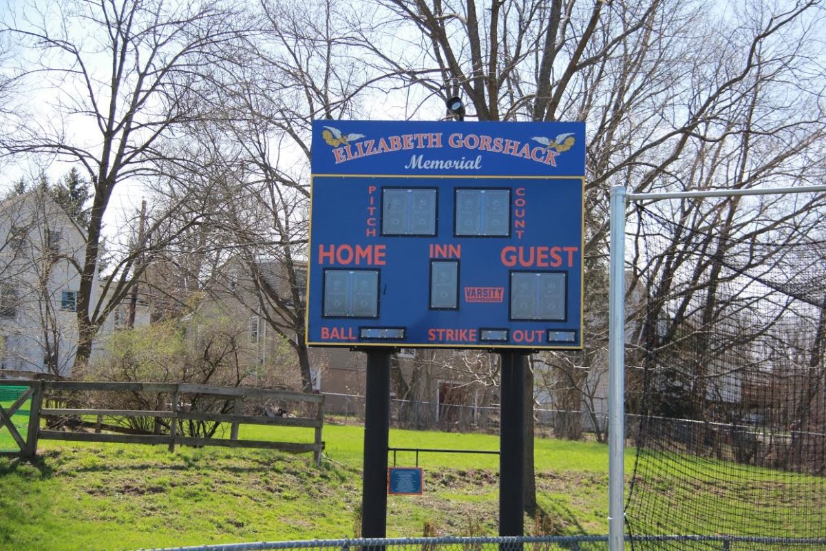 Baseball/softball fields, dugouts, grandstand, restrooms, and playground equipment.